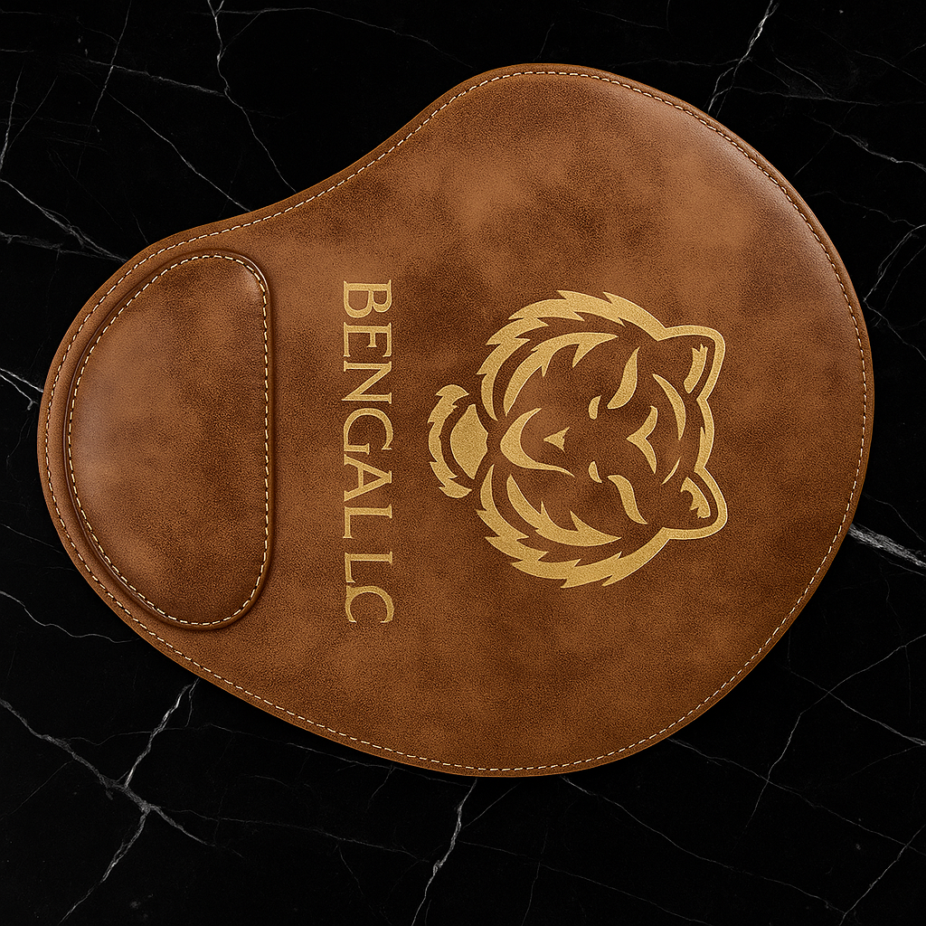 Featuring a warm rustic leatherette body accented with soft gold tones, this mouse pad combines classic design with everyday practicality. The wrist pad provides ergonomic comfort, while the engraved personalization adds a touch of individuality and luxury. Perfectly balanced between style and comfort — a beautiful addition to any workspace.