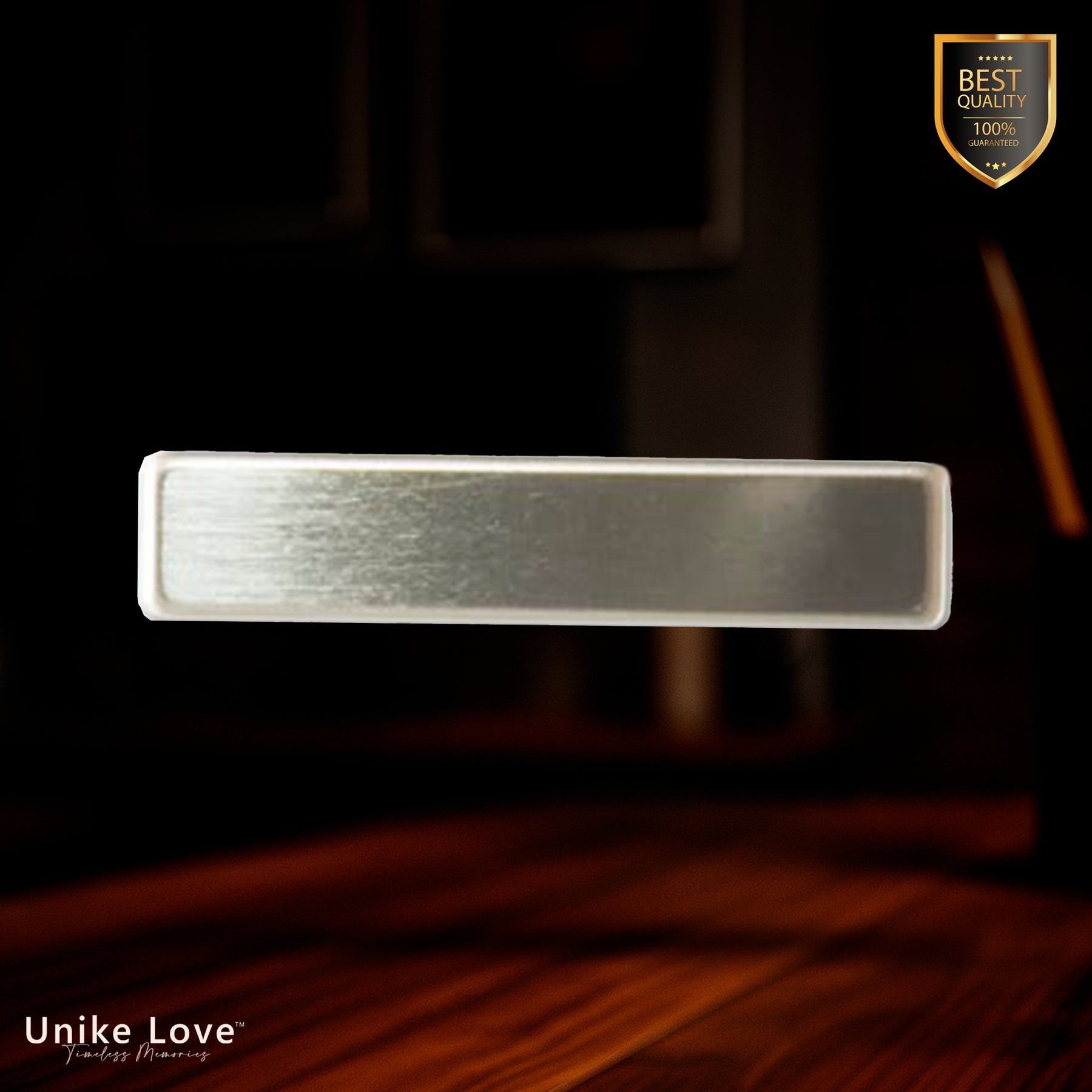 Experience the substantial feel of heavy-gauge nickel silver with its bright, highly reflective silver finish. This blank presents a sleek, mirror-like surface ready for your custom engraving. When personalized, your design will beautifully emerge in a matching silver tone, creating a subtle yet impactful contrast that is both elegant and highly readable. Its robust construction ensures a long-lasting and impressive appearance that maintains its shine.
