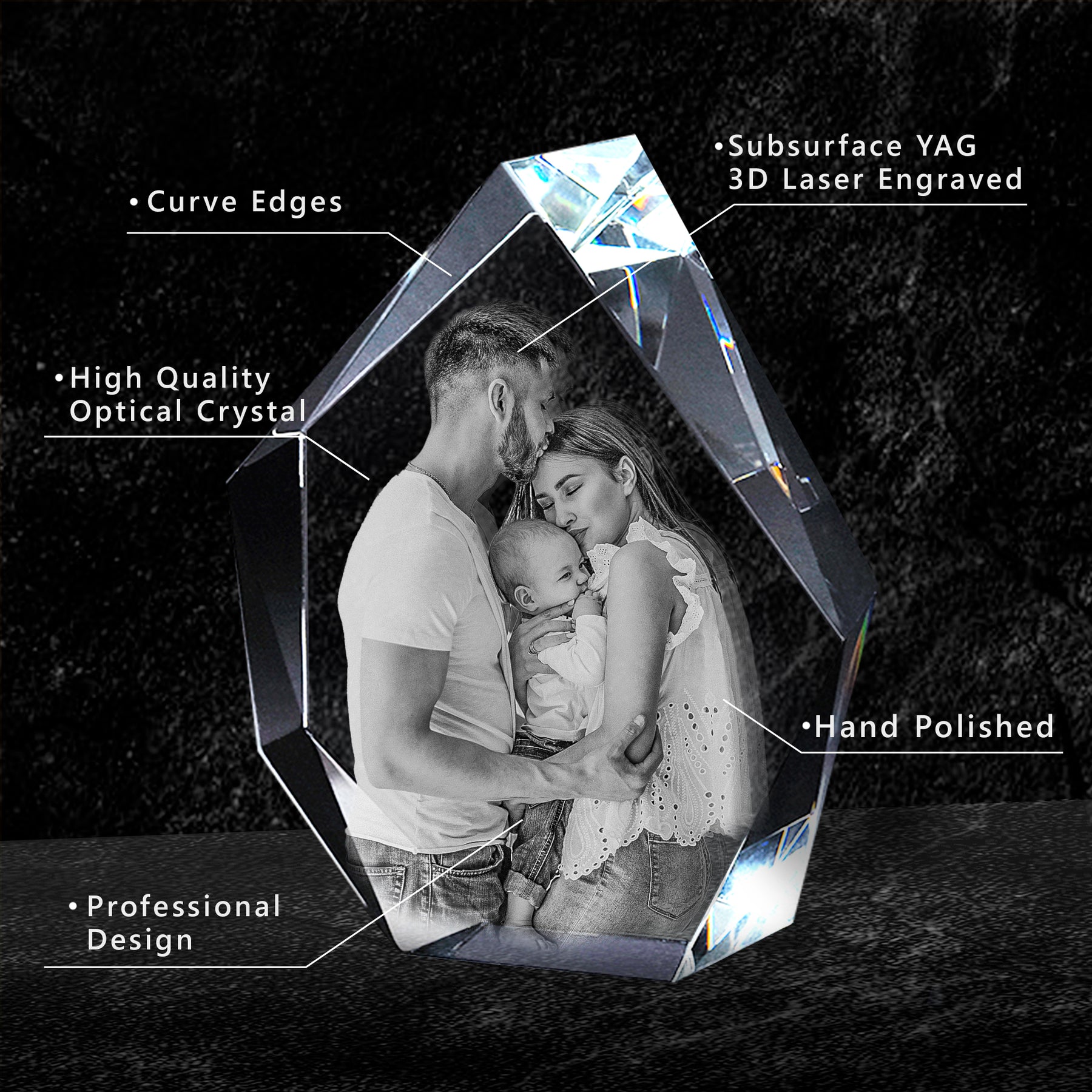 Dazzling, refined, and unforgettable — the 3D Photo Crystal Prestige is the ultimate way to honor life’s most meaningful moments. With its unique angled shape and brilliant finish, the Prestige crystal stands out as a glamorous keepsake that radiates sophistication. Perfect for weddings, anniversaries, graduations, and awards, this crystal transforms your favorite photo into a striking centerpiece of love, achievement, and celebration.