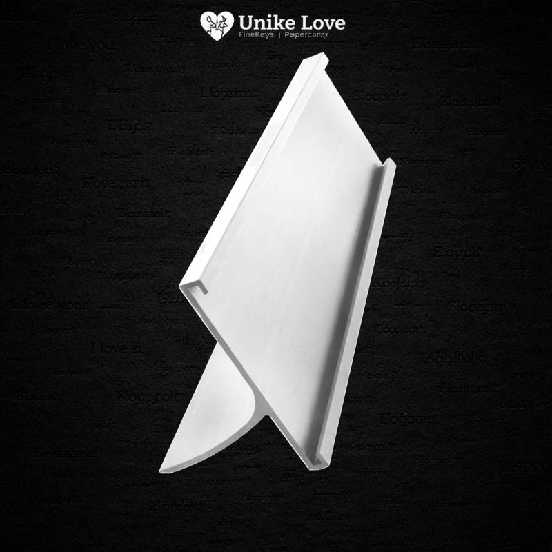 The Kota Pro Shiny Silver Aluminum Desk Holder features a long, streamlined horizontal profile with a smooth metallic finish that adds brightness and sophistication to any workspace. Its sturdy aluminum construction ensures stability, while the shiny silver tone delivers a refined, professional aesthetic suitable for modern interiors.
