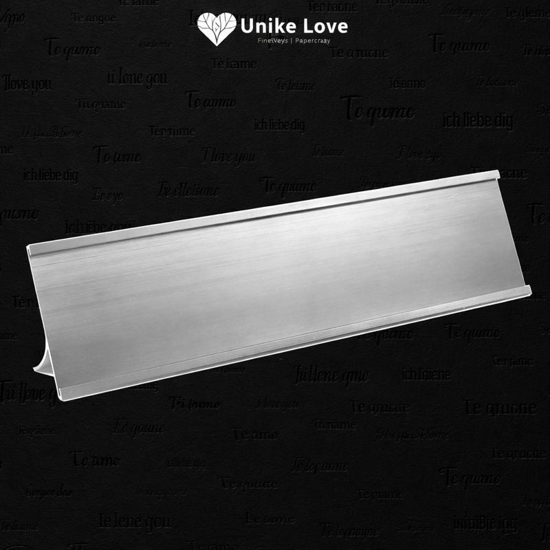 This desk holder is specifically designed for 2" x 12" plastic inserts with a thickness of 1/16". It securely displays printed or sublimated plastic plates, making it easy to update names, titles, or messaging while maintaining a clean, professional appearance.