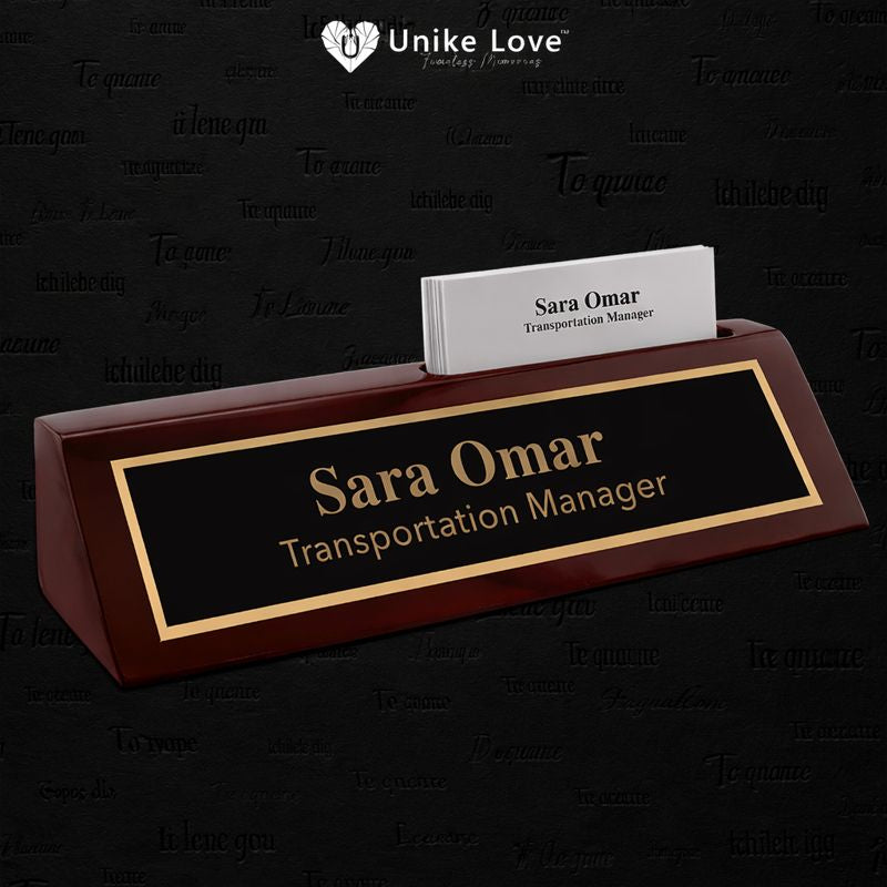 Designed with both style and function in mind, this desk wedge includes a built-in business card slot, making it ideal for offices, reception areas, and executive desks. The rich rosewood finish offers a classic look that pairs beautifully with engraved personalization.