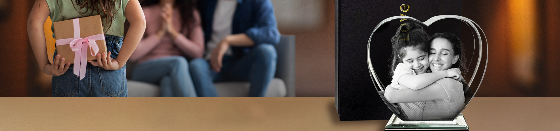 Family Gift | 3D Photo Crystal Heart | Personalized Laser Engraving.