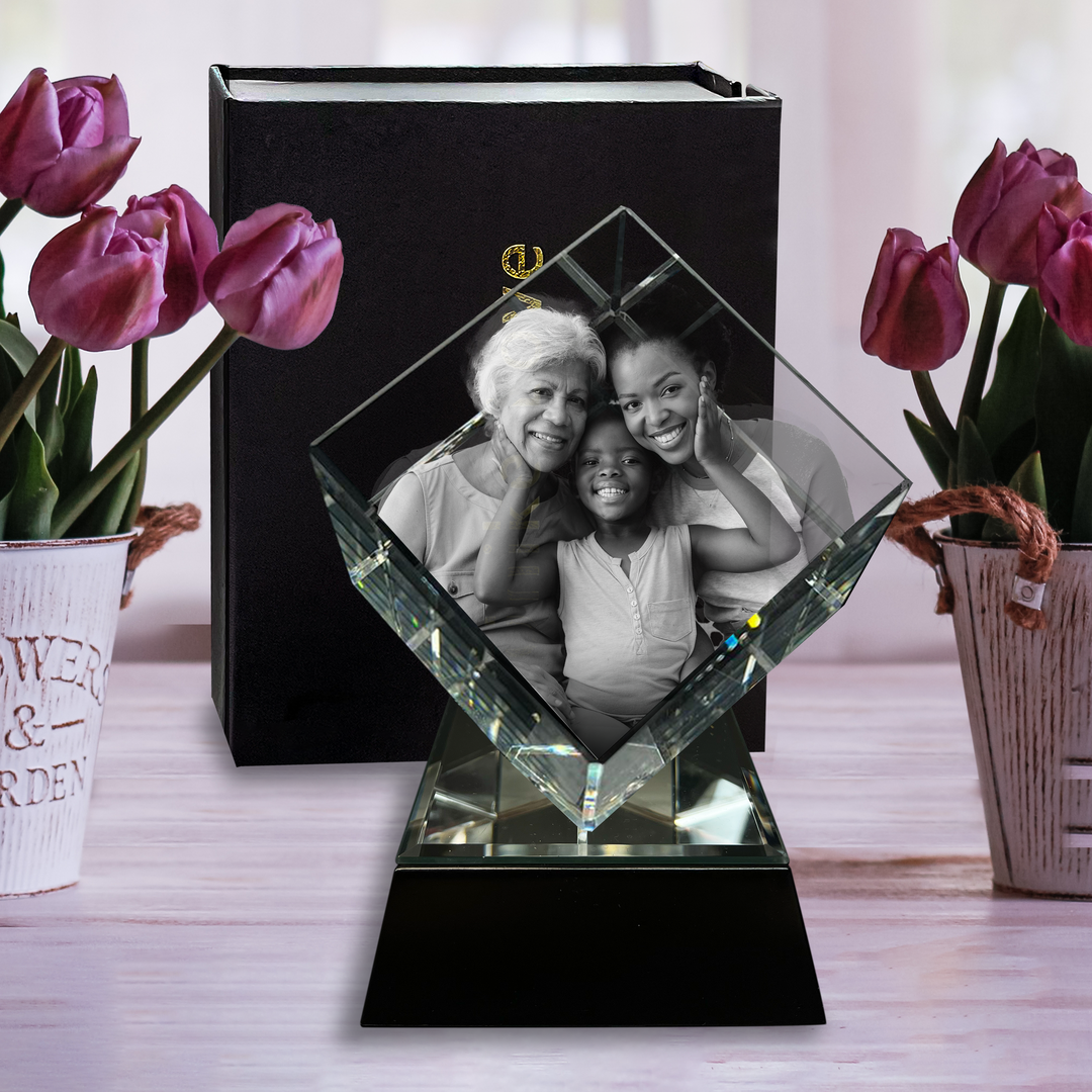 - Upgrade to our Premium option: Add a light base, crystal keychain and crystal necklace