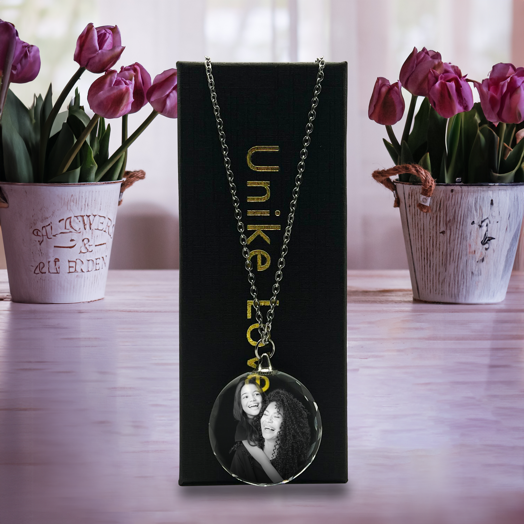 Honor the eternal journey of motherhood with our circle-shaped crystal necklace this Mother's Day. Each engraving tells a unique story of the endless cycles of love, growth, and nurturing. As she wears this pendant, let it remind her of the continuous journey of motherhood, filled with moments of joy, challenges, and unwavering support.